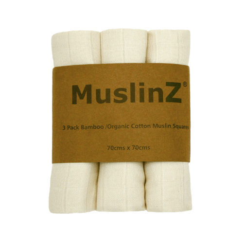 Muslin Square 3 Pack 70x70cm – Unbleached Bamboo/O.Cotton