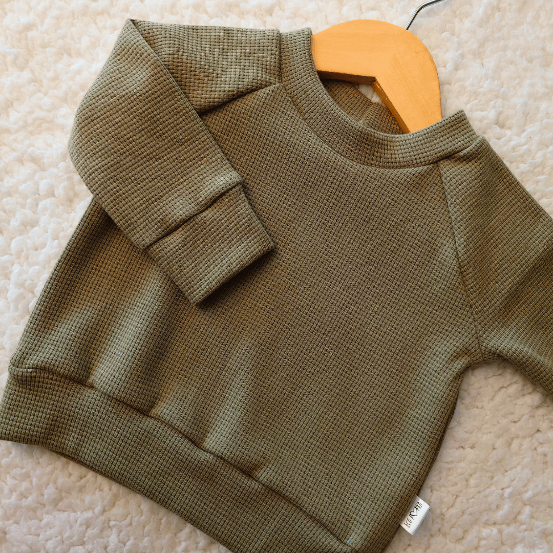 Introducing our Handmade Olive Waffle Jersey Sweatshirt, a cozy essential for your little one's wardrobe. Crafted with 100% cotton, it's gentle on baby's delicate skin, ensuring comfort all day long.